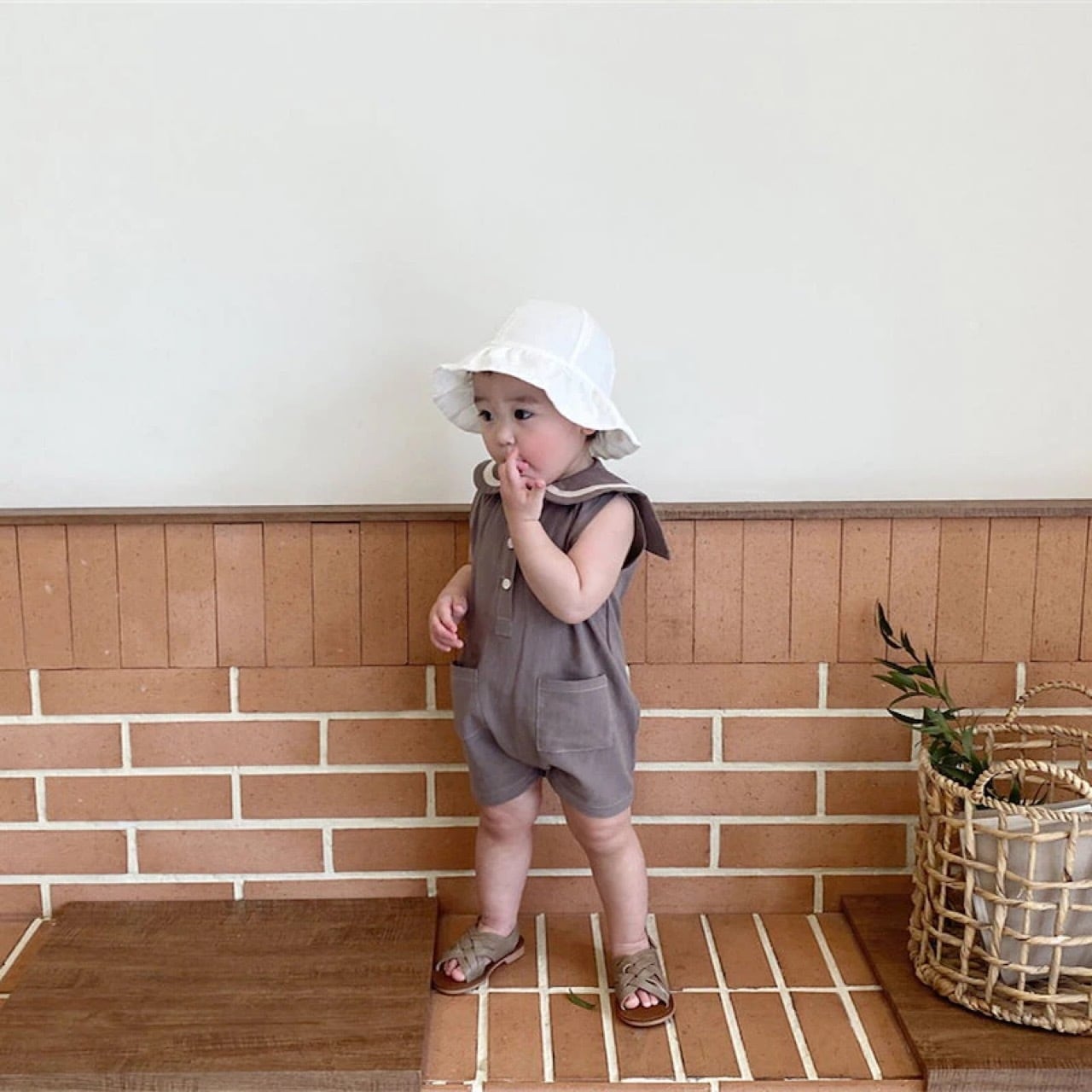 可愛いセーラー風のロンパース!ノースリーブで涼しく?