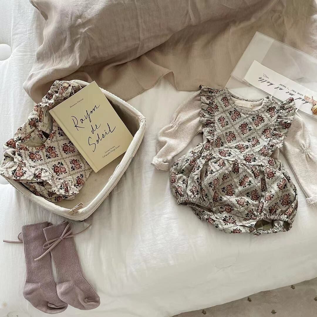 秋に着せたいレトロ感満載のフリルロンパース