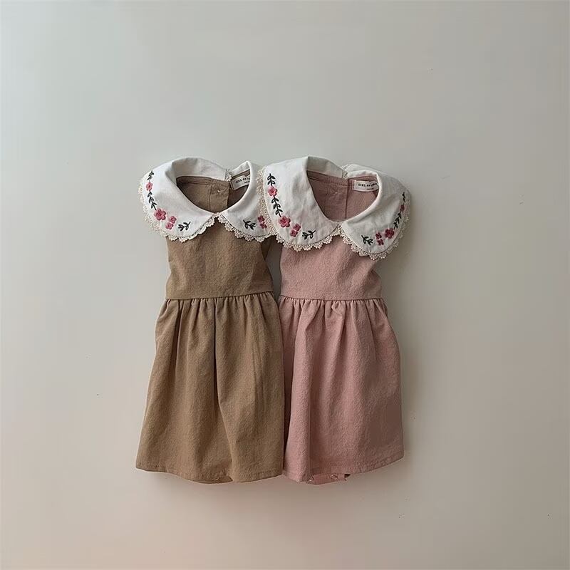• 【発注】くすみカラーレトロ刺繍ロンパワンピ[WP23]