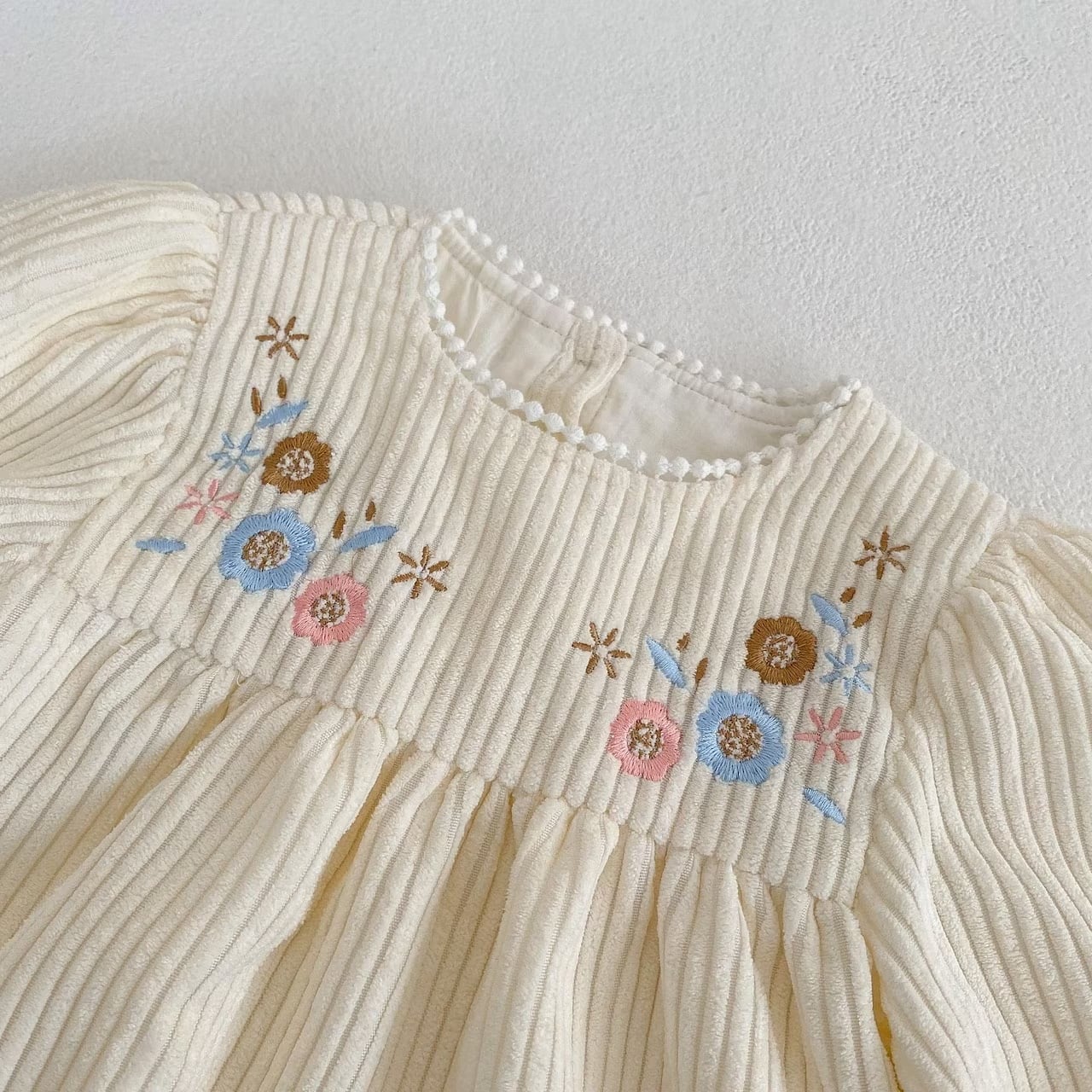 【発注】アプリコットコーデュロイ花柄刺繍ワンピ[WP24]