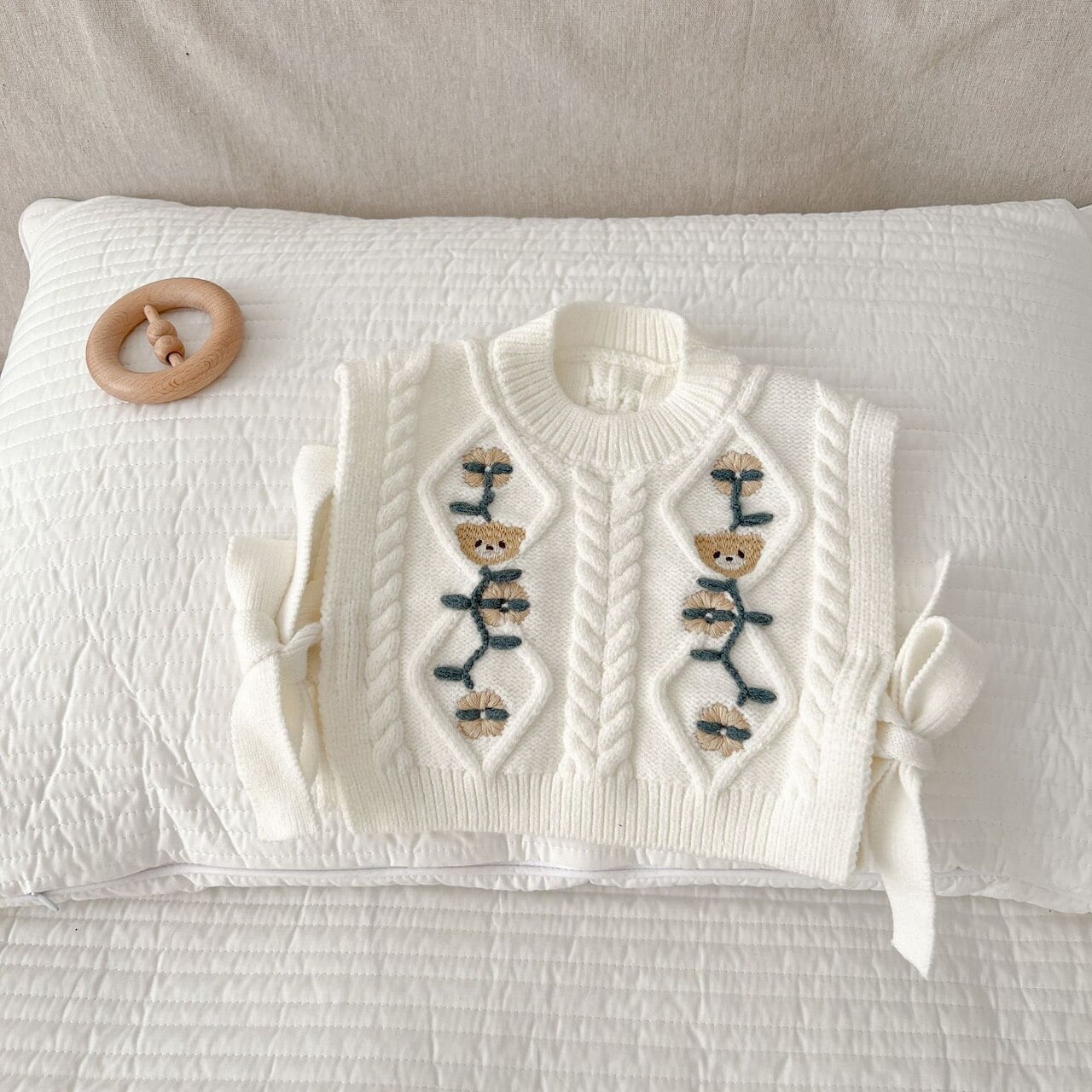優しい色味が可愛いサイドがリボンのニットベストです?