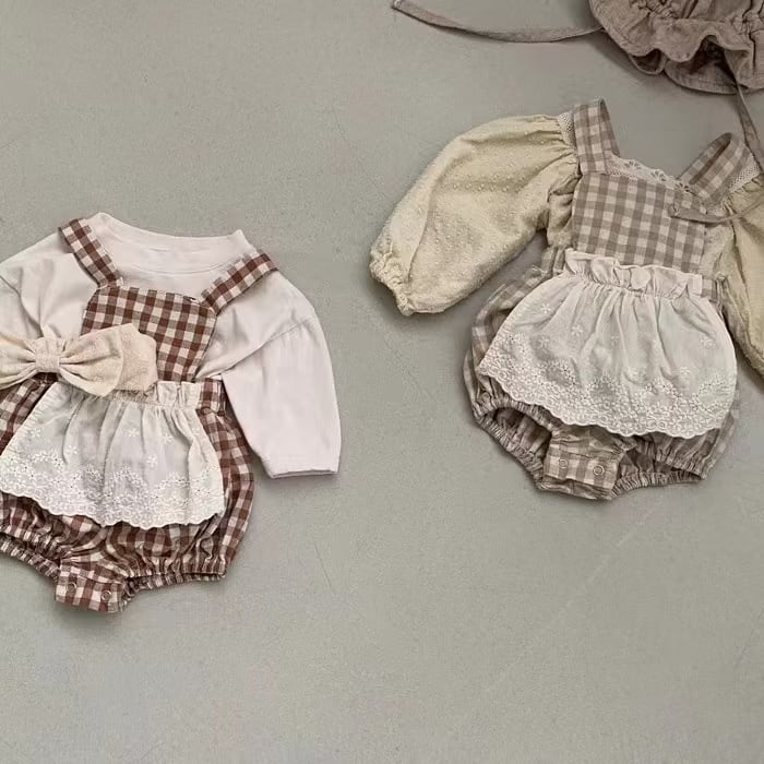 【発注】エプロンギンガムチェックサロペットロンパース[RP90]