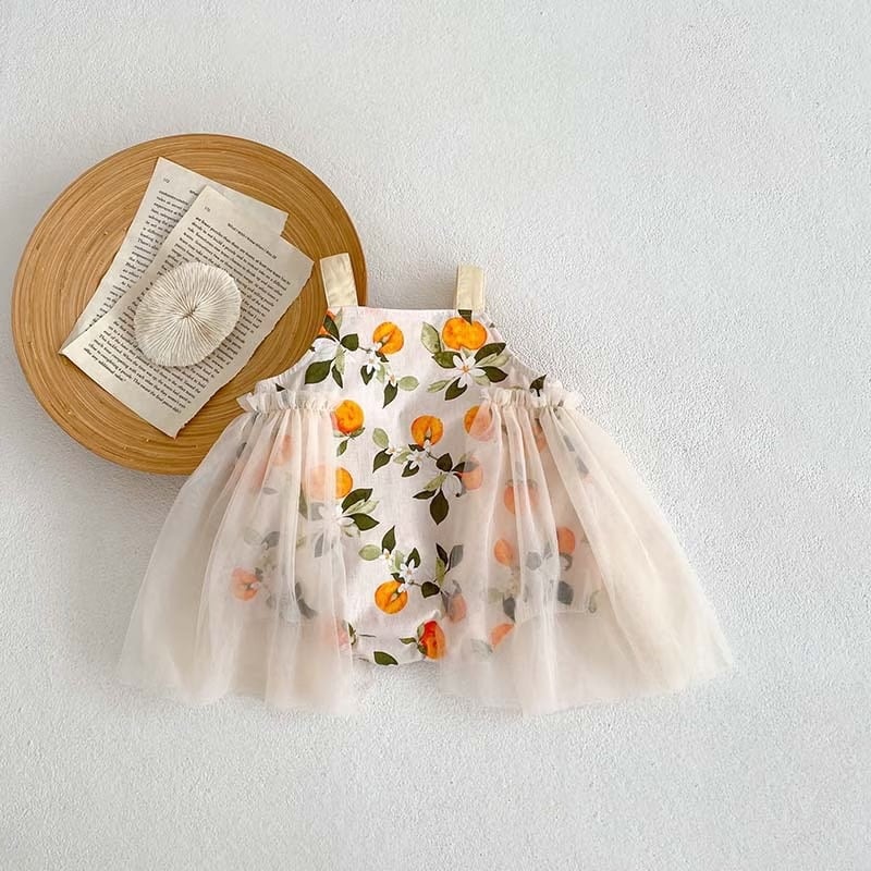 【発注】フルーツ柄チュール付きタンクトップロンパース[RP]