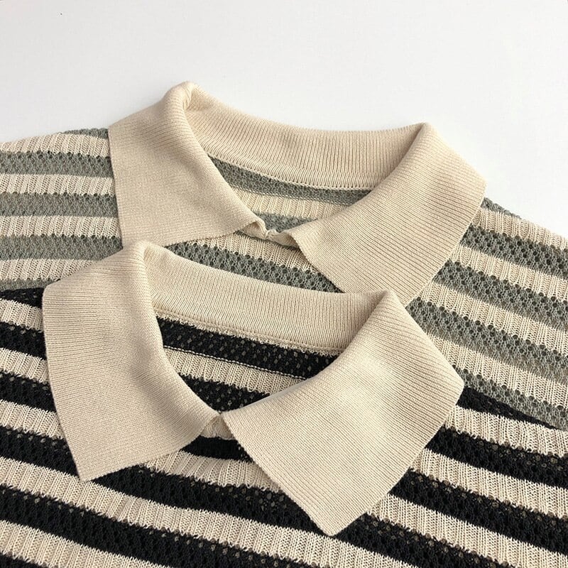 【発注】ボーダー襟つき薄ニットトップス[TP]